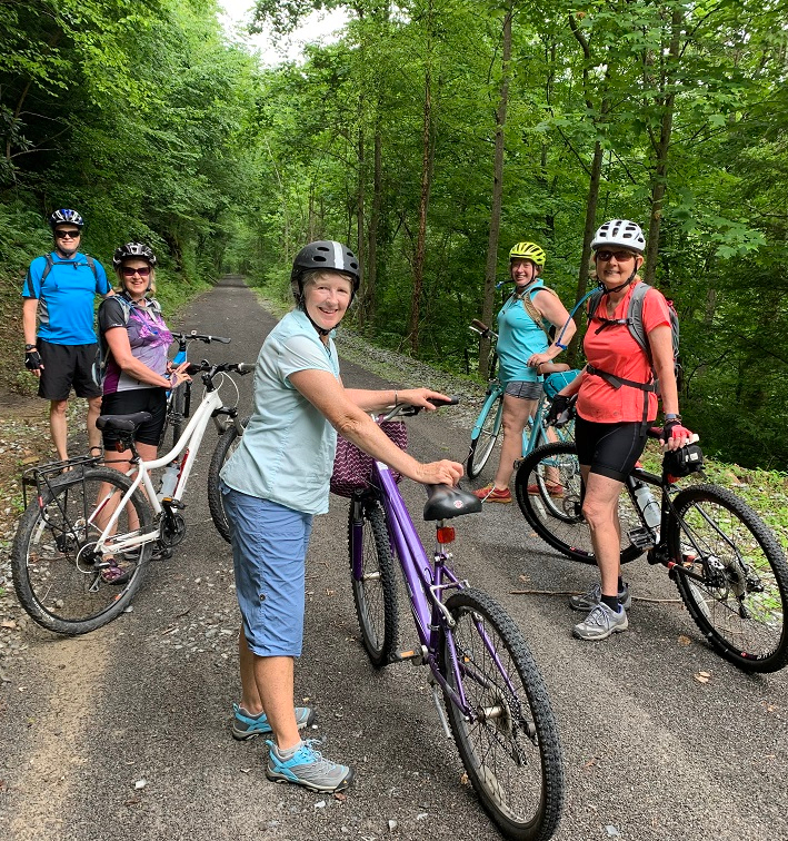 Nine members of the Kanawha Ski Club enjoyed a 20-mile bike ride on the Elk River Rail-to-Trail trail from Duck to Ivydale and back. Bob Galloway was trip leader.